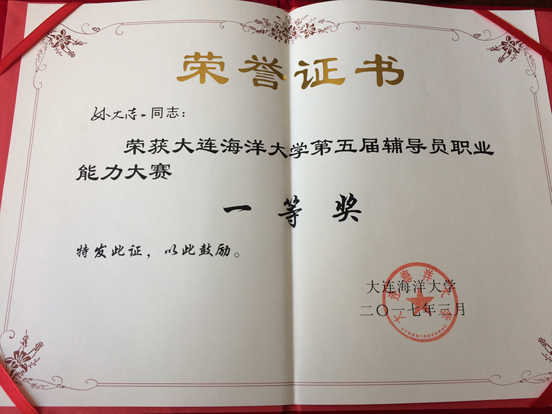 日,大连海洋大学第五届辅导员职业能力大赛落下帷幕,我院团委书记孙大志喜获佳绩,荣获一等奖。