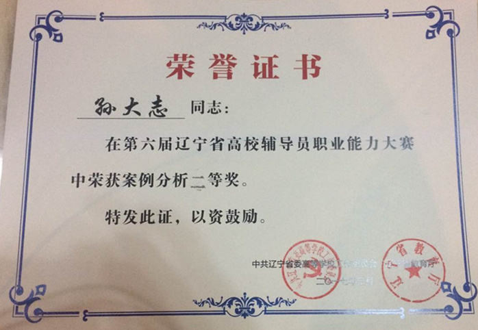 日,第六届辽宁省辅导员职业能力大赛落下帷幕,我院团委书记孙大志老师喜获佳绩,