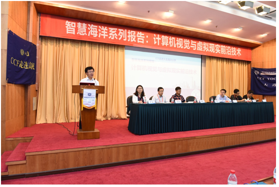6月16日,由我院主办的“CCF走进大连海洋大学暨智慧海洋系列报告:计算机视觉与虚拟现实前沿技术”在图书馆报告厅顺利举行,报告会邀请到了CCF理事以及会员与分部工作委员会主任、天津理工大学罗训教授,中国海洋大学计算机科学与技术系主任董军宇教授、ACM大连分会秘书长、大连理工大学王雷教授以及中国计算机学会青年计算机科技论坛(CCF YOCSEF)总部主席、西安电子科技大学苗启广教授为与会师生分享了他们在“计算机视觉与虚拟现实”领域最新的研究成果。我校副校长宋林生教授出席报告会并致辞,报告会由我院院长于红主持。