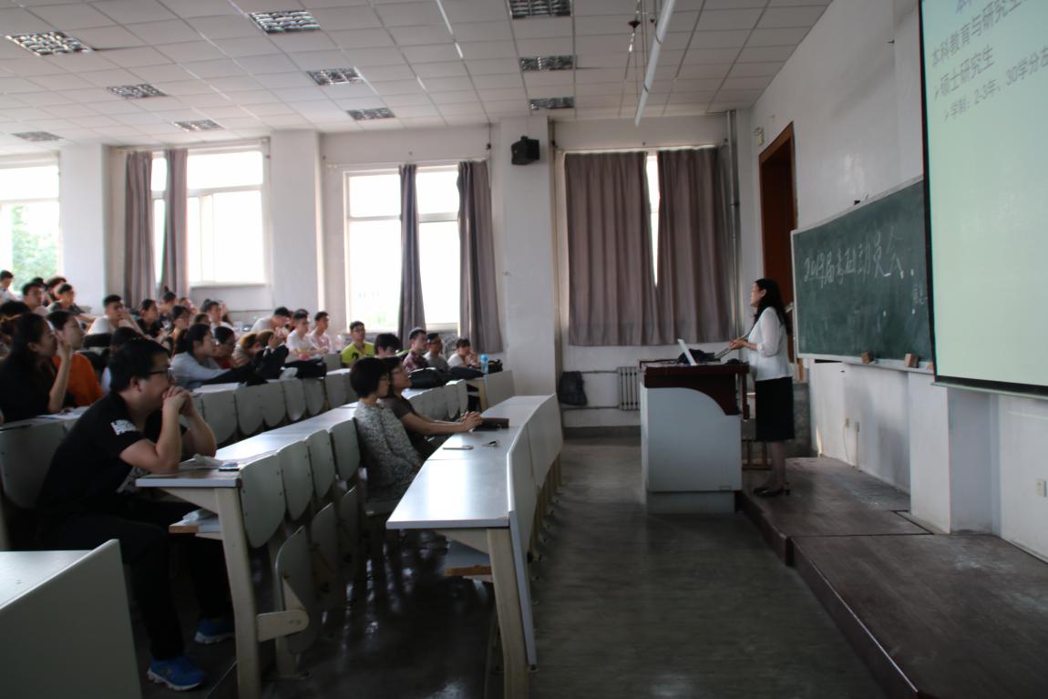 于红院长明确指出了目前2015级学生处于选择考研还是就业的人生分叉路,要认真思考分析选择适合自己的路。接着,于院长从自身学历能力提升、未来发展潜力和空间以及家庭经济压力等方面细致对比阐述了选择考研和就业的优势和劣势,从现代教育发展的需求和趋势角度解释了社会对于学历层次高低的重视度,并介绍了省内多所高校相关专业的的建设和招生情况。最后,她鼓励学生尽早确定奋斗目标,通过考研进一步提升自己的学习能力、工作能力和社会竞争力。