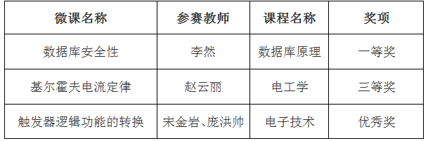 此次“超星杯”微课大赛全校共有25件微课作品参赛,经校外专家评审,评出一等奖四名、二等奖六名、三等奖十一名、优秀奖四名。该项大赛为进一步提高教师微课制作与应用水平、推动我校数字化课程建设、促进信息技术与课堂教学的深度融合起到了积极的推动作用。