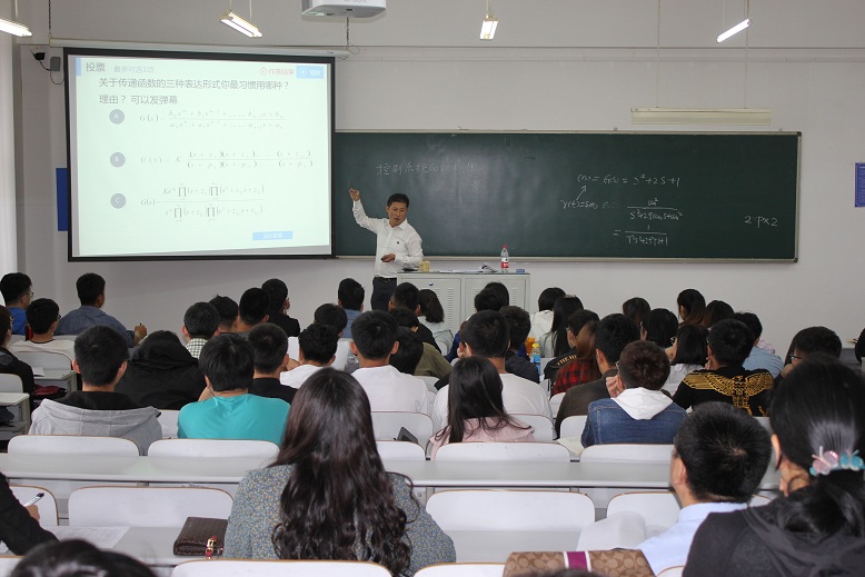 在本次示范课中,崔新忠老师讲授的内容是控制系统的结构图。他借助多媒体及雨课堂公众号教学手段,完成随机点名、课前练习等教学环节,将生生互动、师生互动充分统领课堂。他独特的讲课风格和特有的启发式教学方法,不仅吸引着学生,在座的教师们也都在手机端积极参与了课堂练习答题。崔新忠老师语言亲切随和,幽默风趣,仪态自然大方,为优质教学观摩课开了一个精彩好头。