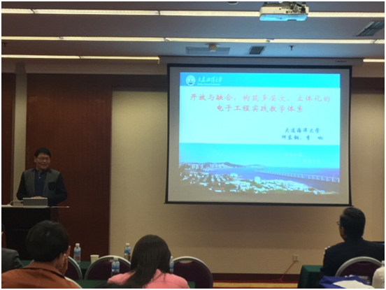 本次报告为邀请制,共有来至东南大学、电子科技大学、大连理工大学、东北大学等八个主题报告。基于我校在电子技术课程建设及体系改革方面所取得的成就,我院教师李响作了题为“开放与融合,构筑多层次、立体化的电子工程实践教学体系”的工作与成果汇报。报告深入浅出、内容详实、成果突出,赢得了与会领导、专家的高度肯定和赞扬。据悉,我校作为省内普通高校代表受邀做大会工作汇报,标志着我校在电子工程实践教学体系建设方面已走在省内高校前列。