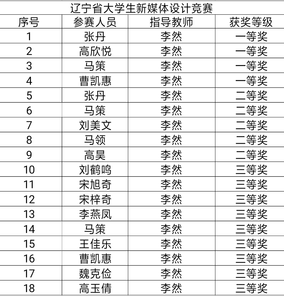 辽宁省大学生新媒体设计竞赛是辽宁省教育厅确定的重点大学生设计类竞赛之一,被誉为“辽宁省新媒体设计皇冠上璀璨的明珠”。自赛事自发起举办以来,我院参赛作品众多,参赛队伍屡创优绩。有效培养了学生创新精神,提升了学生团队意识和实践能力。