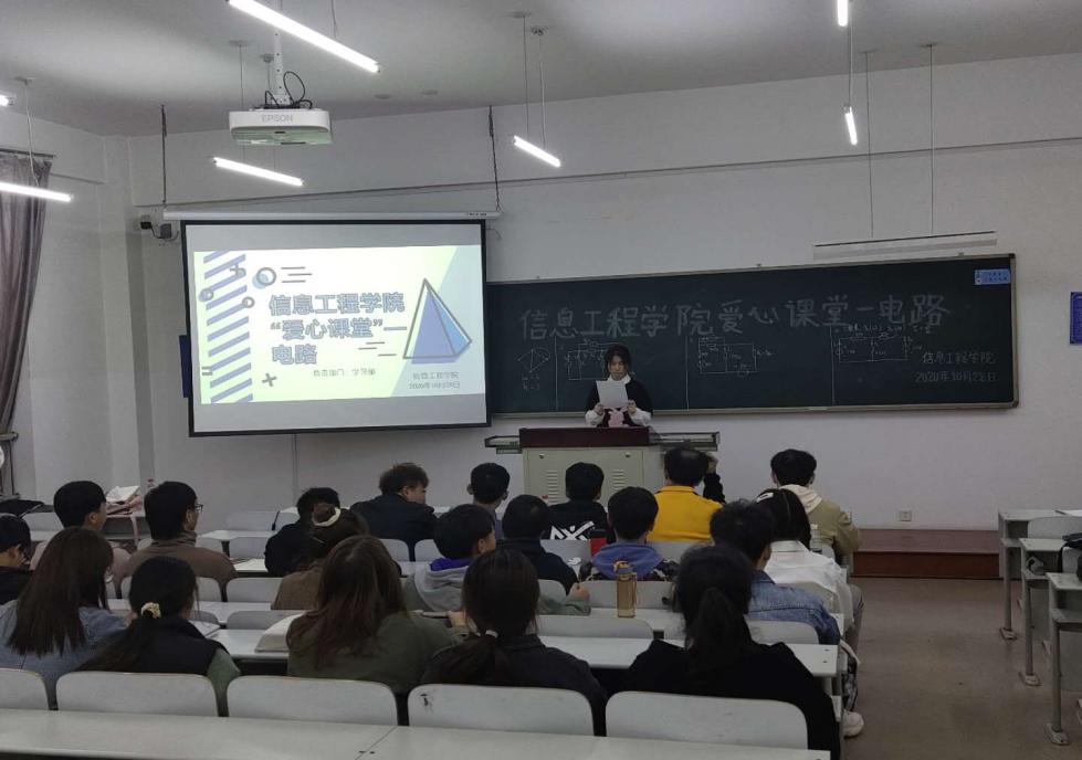 爱心课堂第一课是《电路》,由学习部通信19-2班陈佳欣主持自动化18-2石翔、李卓璐同学主讲,为了呈现更好的教学效果,两位同学都做足了准备工作,制作课件并结合其内容,层次分明地为各位同学进行了耐心和深入的讲解和问题答疑。