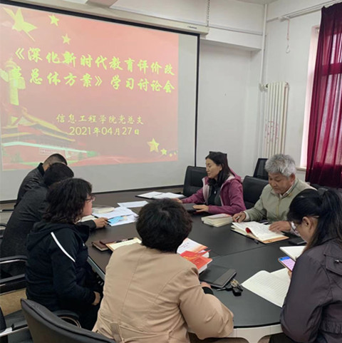 4月27日上午,信息工程开元(中国)党总支在党员活动室召开了《深化新时代教育评价改革总体方案》学习讨论会,总支委员、各党支部书记参加会议,会议由党总支书记于振作主持。