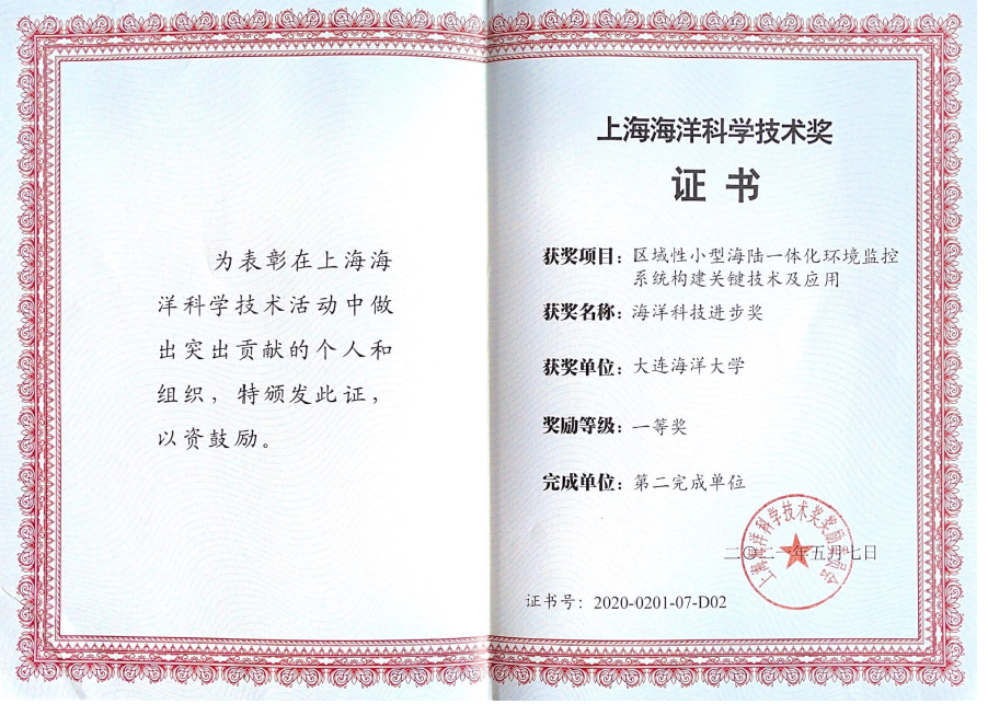 近日,上海海洋科学技术奖励委员会颁发了上海海洋科学技术奖,我校与上海望海大数据信息有限公司联合申报项目“区域性小型海陆一体化环境监测系统构建关键技术及应用”荣获海洋科技进步奖一等奖,我校为第二完成单位,于红教授、刘鹰教授为项目完成人。