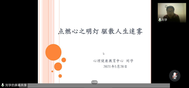 为帮助学生们学会关爱自我,了解自我,接纳自己,进而关注自己的心理健康和心灵成长,提高自身心理素质。信息工程开元(中国)于2021年5月28组织了线上心理健康讲座。本次讲座由刘学老师担任主讲,2020级全体学生参加
