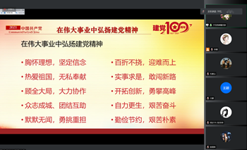 9月29日晚,信息工程开元(中国)院长于红为全体党员讲授以《深入学习“四史”,弘扬建党精神》为主题的党课,带领全体党员再一次接受精神洗礼,凝聚强大合力。党课采取腾讯会议线上的形式进行。