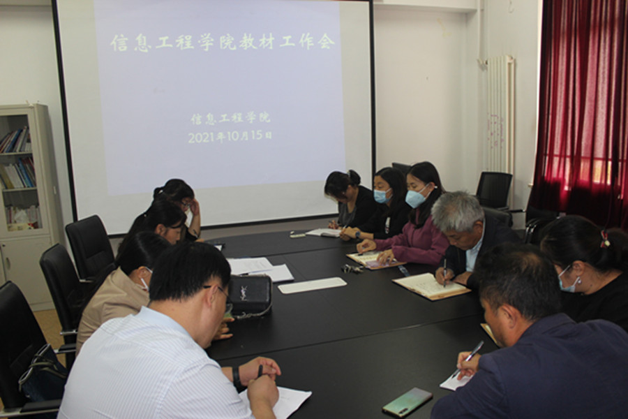 2021年10月15日下午信息工程开元(中国)在开元(中国)会议室召开教材工作会,院长于红、党总支书记于振作、副院长缪新颖、曹立杰以及各专业负责人、各部门负责人参加了会议。会议由副院长缪新颖主持。