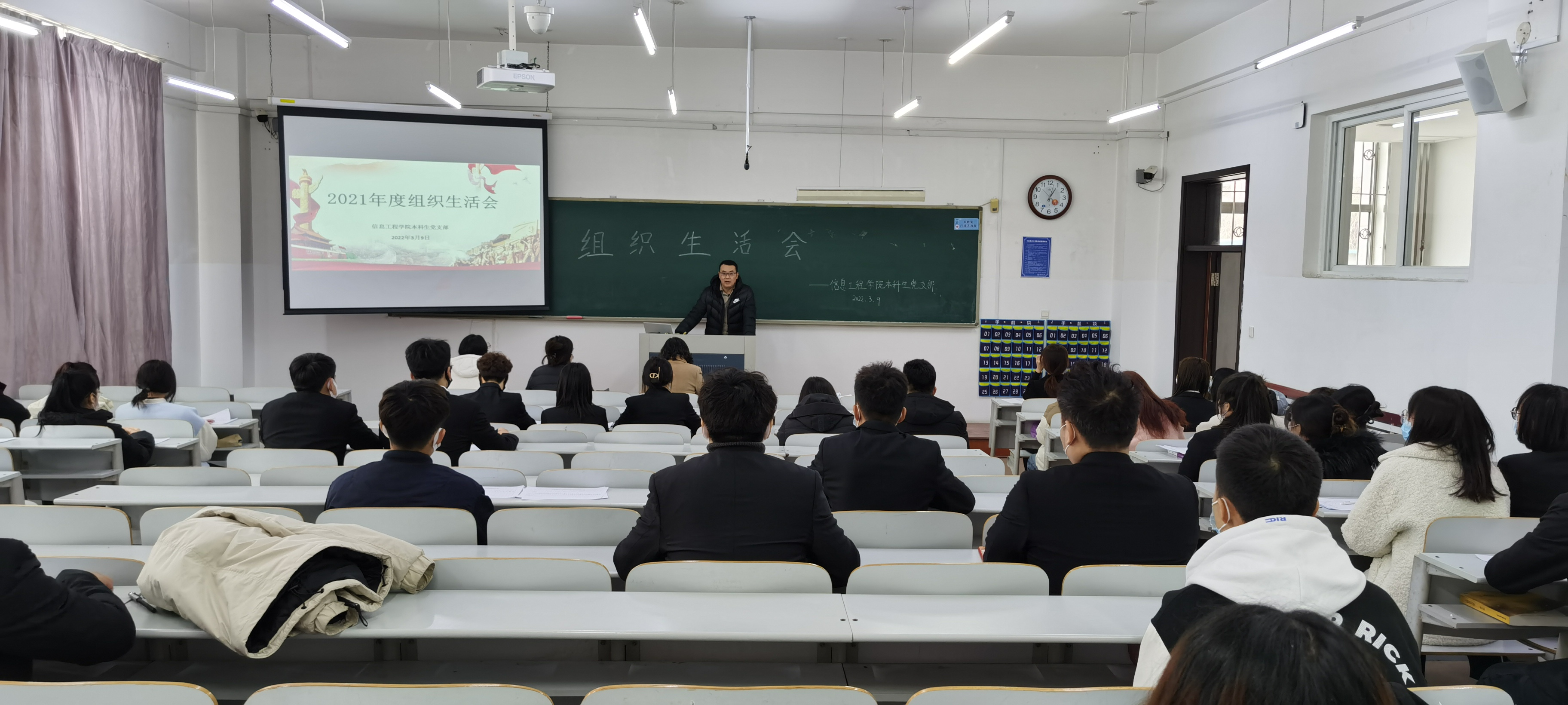 信息工程开元(中国)本科生党支部于3月9日13:00在獐子岛教学楼131教室召开2021年度党组织生活会。信息工程开元(中国)党总支副书记范庆华、团委书记王建东、各年级辅导员及学生党员、预备党员参加本次大会。本次会议由杨宇萌主持。