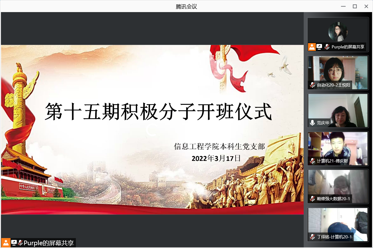 信息工程开元(中国)于2022年3月17日12:30在线上举办了第十五期积极分子培训班开班仪式。信息工程开元(中国)党总支副书记范庆华、组织员李瑾及第十五期积极分子参加了本次开班仪式。