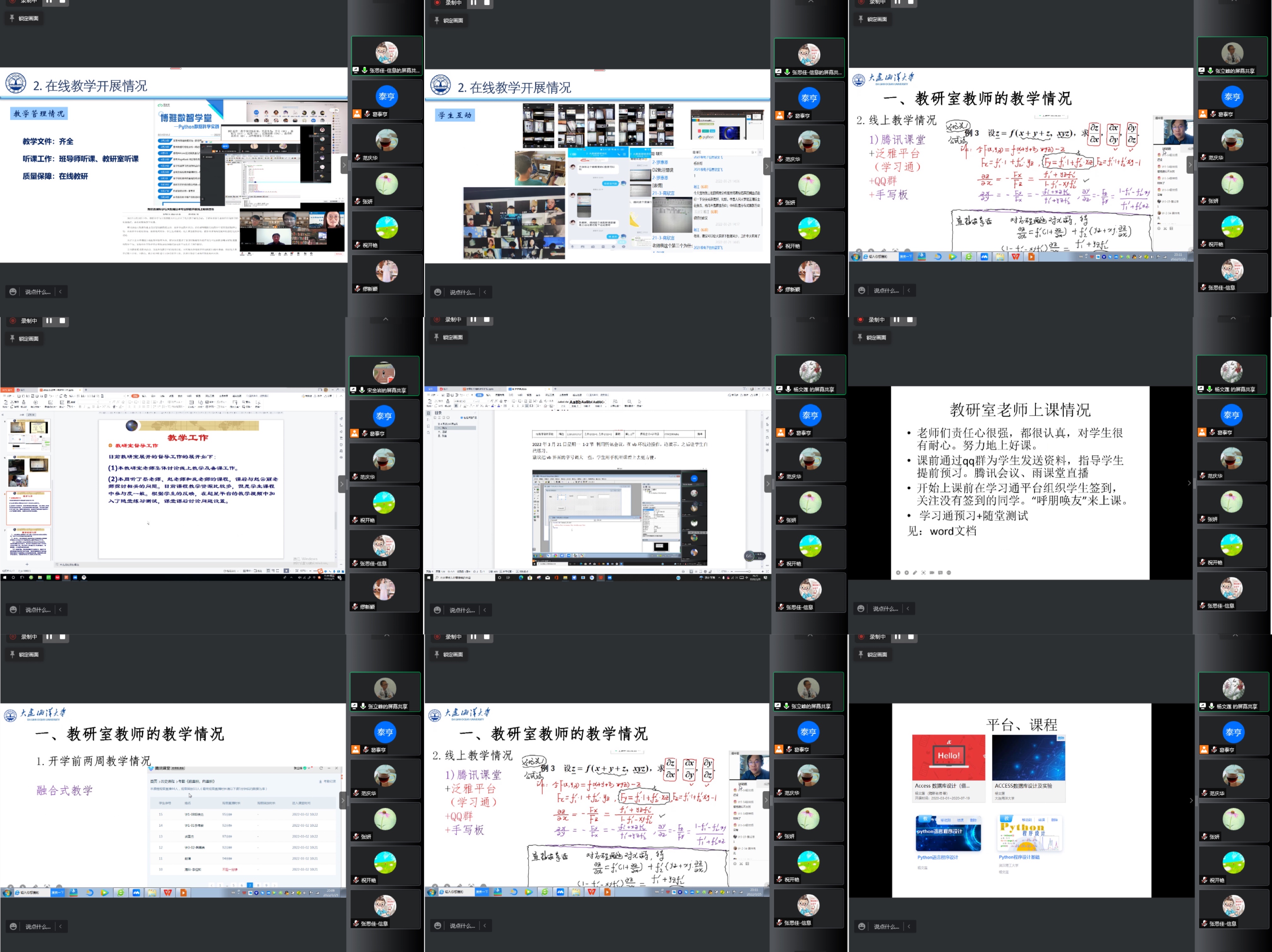 整个会议历时两个半小时,参会教师都积极发表看法,对线上教学中的成功经验进行了充分沟通,对如何应对线上教学中的问题进行了深入交流。教师们一致表示,以学生为中心,通过精心的教学设计,积极适应新形势,勇于担当,一定可以克服此次新冠肺炎疫情对教学的影响,实现教师和学生的共同进步。
