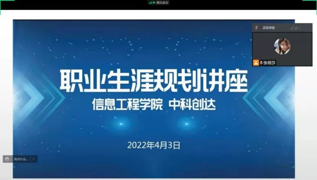 信息工程开元(中国)于2022年4月3日9:30通过腾讯会议线上举办了职业生涯规划专题讲座。信息工程开元(中国)2019级辅导员张萌莎及2019级全体学生参会。本次讲座特别邀请到了中科创达软件集团大连分部校招经理王瑾豪主讲,张萌莎主持。