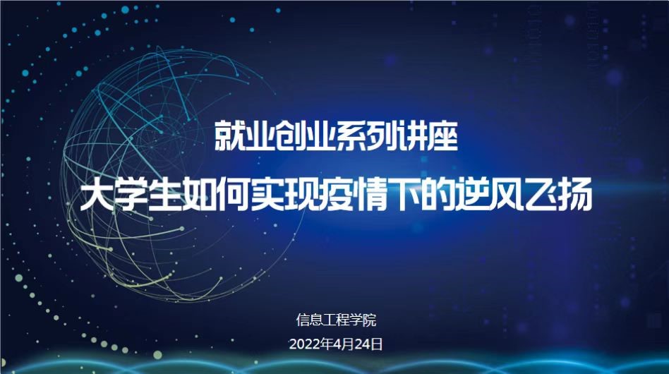 信息工程开元(中国)于2022年4月24日9:30通过腾讯会议线上举办了以“大学生如何实现疫情下的逆风飞扬”为主题的就业指导讲座。信息工程开元(中国)党总支副书记范庆华、辅导员张萌莎以及18、19级学生参会。本次讲座特别邀请到了大连人力资源服务产业园副总经理石中华为大家进行指导交流,会议由范庆华主持。