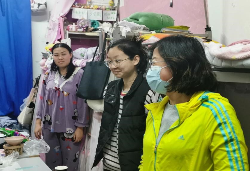 走访过程中,范庆华深入了解学生们的封校线上授课期间的学习生活情况,并解答大家遇到的问题和疑惑,逐一对宿舍里可能存在的安全隐患进行了排查。她强调疫情防控期间更要注意寝的整洁卫生、通风换气等问题,为自己和他人提供良好的学习生活环境。提醒大家在公共场合佩戴口罩,合理分配好时间,劳逸结合,适当进行户外运动。她与毕业生进行了亲切地交流,询问大家就业去向和意向,各处个性化的建议和意见,并叮嘱大家要先就业、再择业。