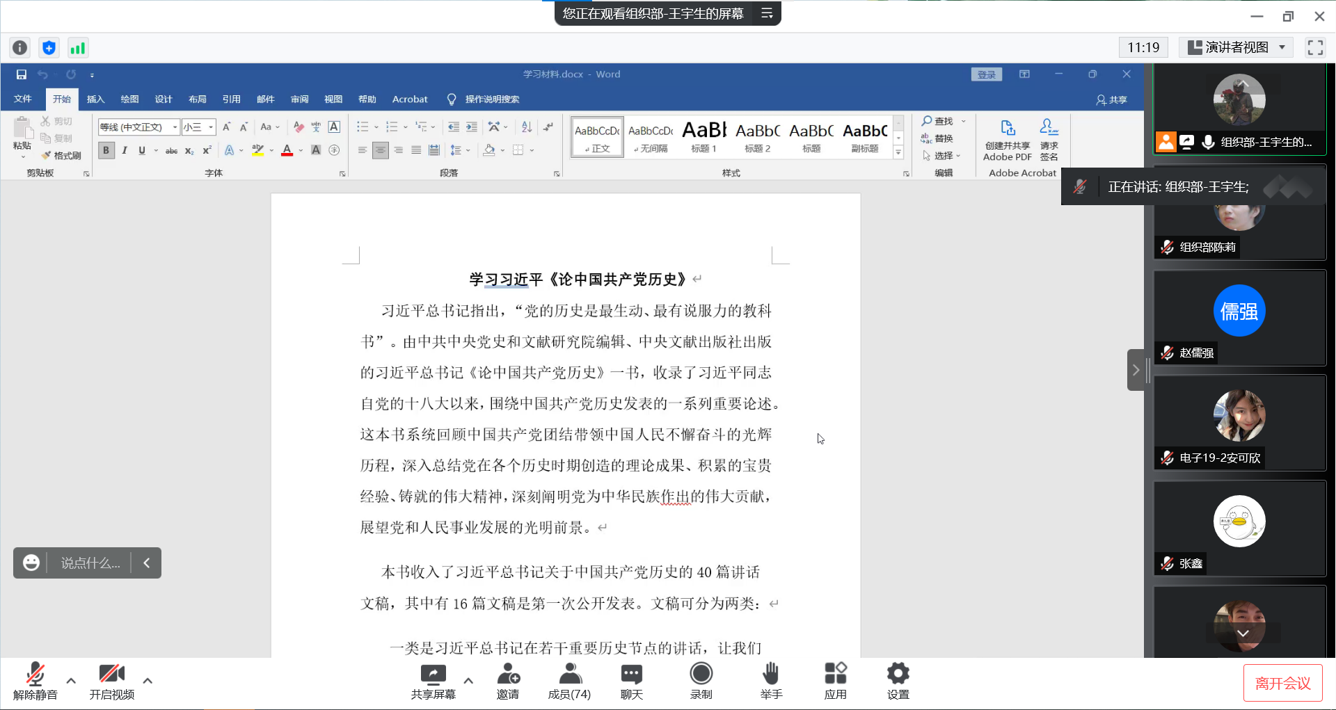 信息工程开元(中国)本科生党支部于6月15日18:00通过腾讯会议在线上开展了以学习《论中国共产党历史》和《习近平谈治国理政》为主题的党日活动。全体党员参加本次活动。会议由王宇生主持。