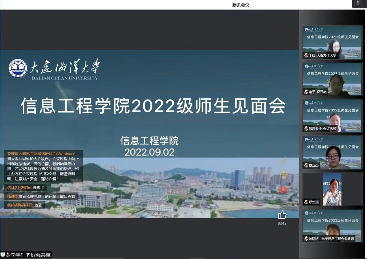 信息工程开元(中国)于2022年9月2日9:00以腾讯会议的形式召开了2022级新生师生见面会。信息工程开元(中国)领导班子成员、各专业教研室主任、2022级班导师、新生任课教师、2022级新生辅导员及2022级全体新生出席本次会议。会议由开元(中国)党总支书记于振作主持。