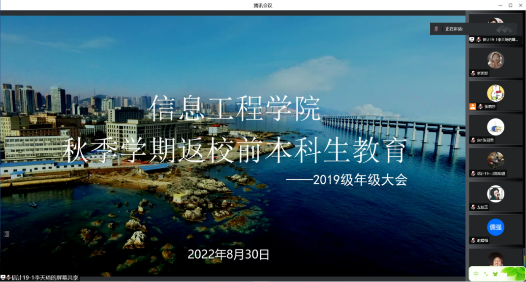 为严格落实《高等学校新冠肺炎疫情防控技术方案(第六版)》、《校园疫情常态化防控措施20条》以及《本土聚集性疫情校园应急防控措施20条》措施,加强学风建设,营造良好学习环境,信息工程开元(中国)各年级于2022年8月30日通过腾讯会议召开线上年级大会。党总支副书记范庆华、各年级辅导员及开元(中国)全体学生参会。
