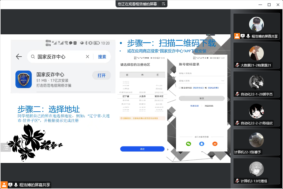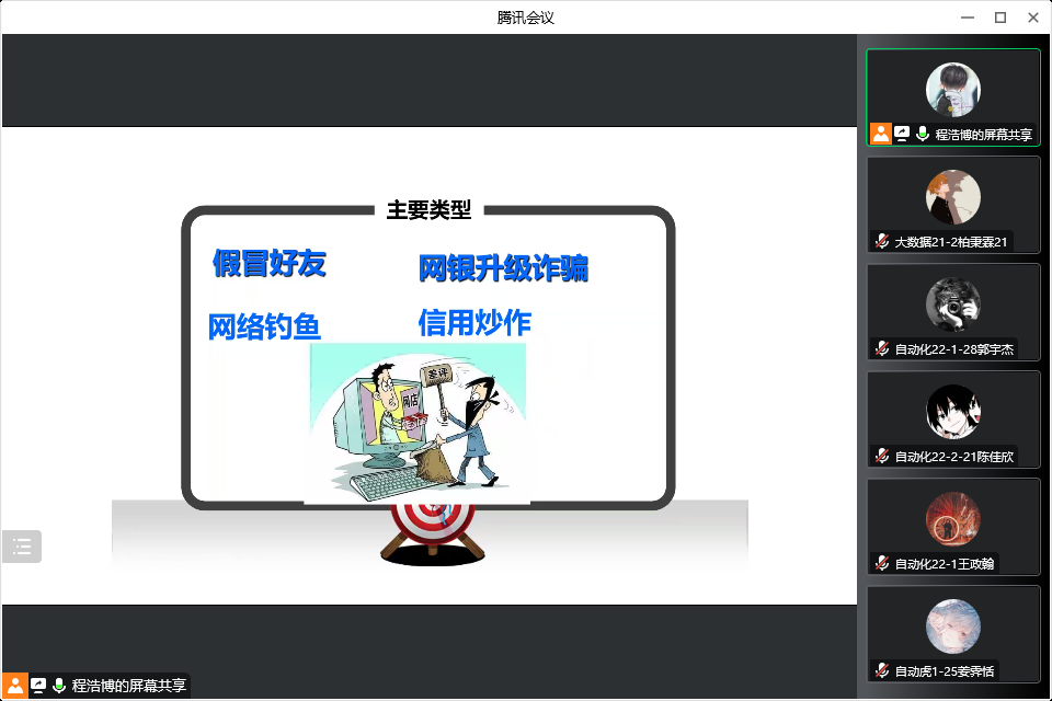 近年来,随着通讯技术的发展及多样化,电信诈骗手段和形式也开始呈现出多样化趋势。信息工程开元(中国)于2022年10月22日17:00开展了线上校园反诈骗安全学习讲座,本次讲座由学生会副主席程浩博主持,2022级全体新生出席。