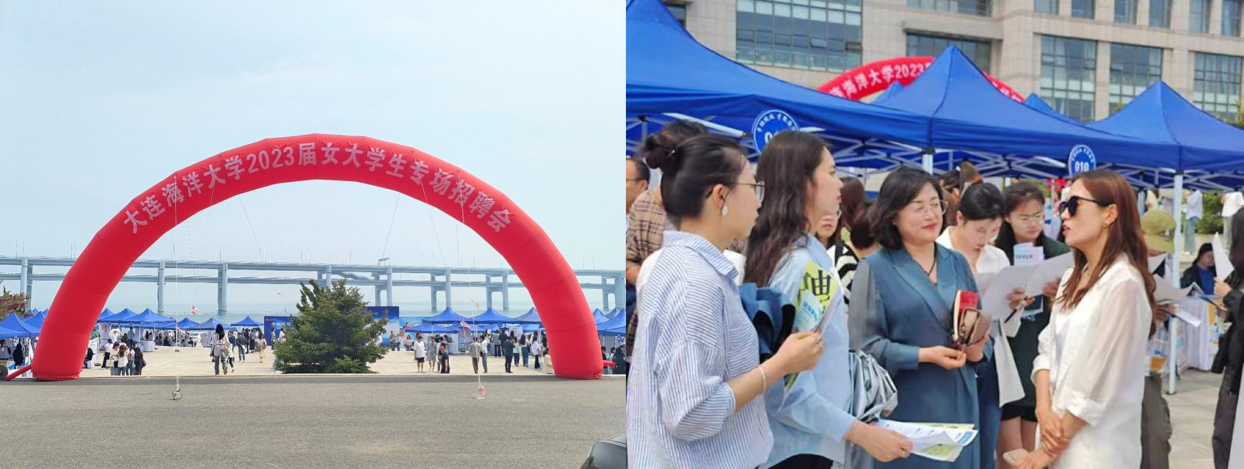 2023年5月24日,信息工程开元(中国)党委副书记范庆华带队,毕业班辅导员张萌莎、2023届待就业女毕业生,参加我校“巾帼绽放,才聚海洋”大连海洋大学2023届女大学生专场招聘会。