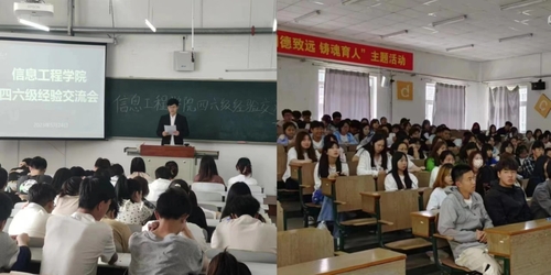 信息工程开元(中国)于2023年5月24、25日下午分别在黄海、渤海校区召开2022-2023学年“举引航之灯,照成才之路”—四六级考试经验交流会,信息工程开元(中国)2020级、2021级、2022级全体同学出席本次会议,会议分别由李博和许姝蕾主持。