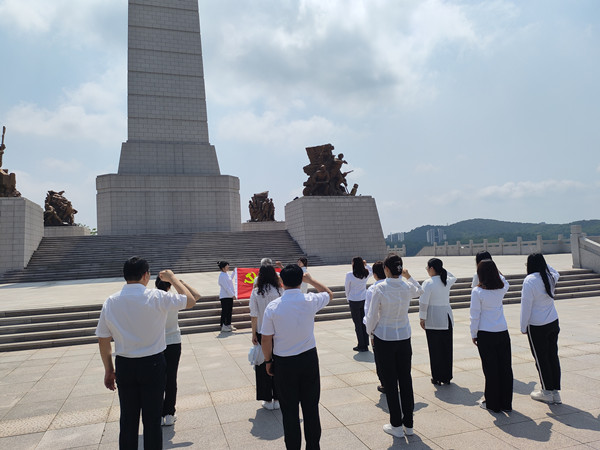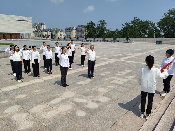 观结束后,大家来到抗美援朝纪念塔前,在党委书记于振作的带领下,全体党员面向党旗举起右拳庄严宣誓,既重温了入党誓词,也向英雄先烈们庄严承诺,为党和人民的事业,为中华民族伟大复兴而奋斗终生。