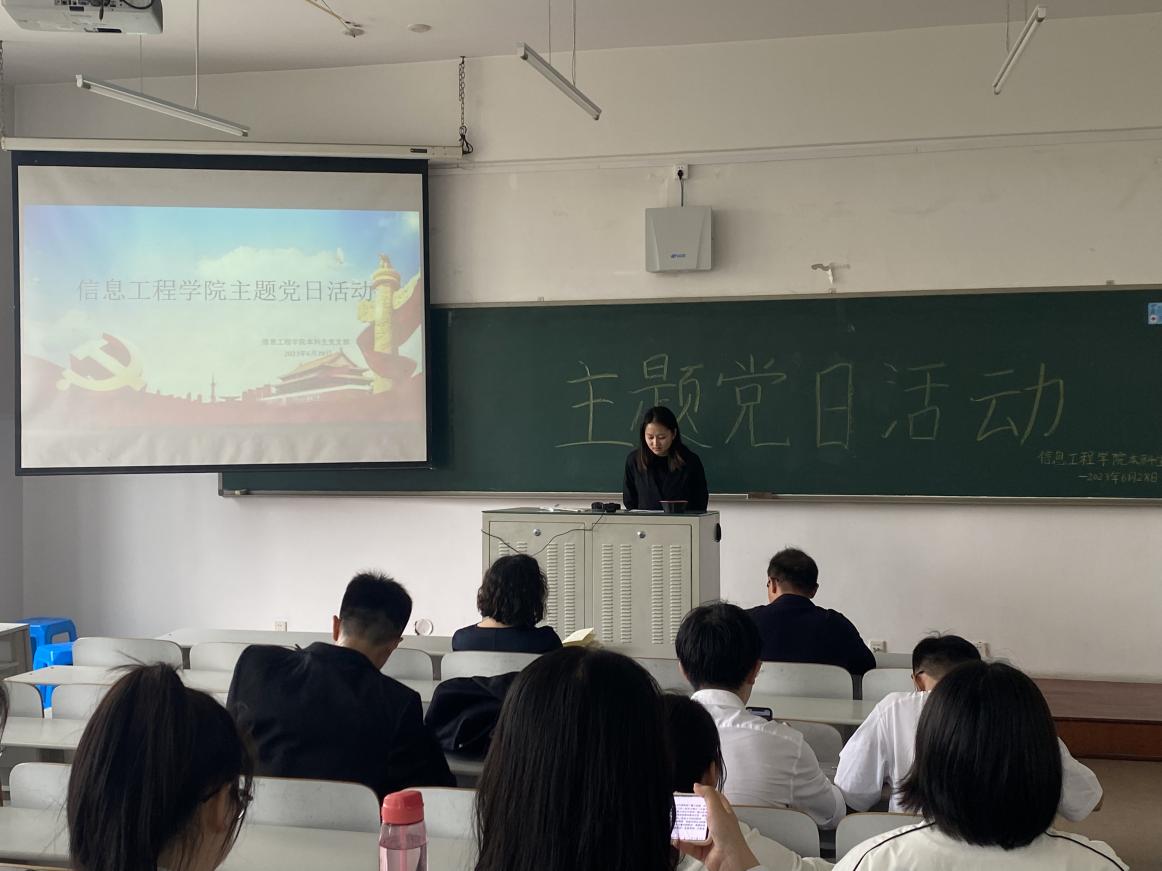 信息工程开元(中国)于2023年6月28日在獐教222教室召开本科生党支部主题党日活动。党委副书记范庆华、党支部书记修恒哲以及学生党员参加本次大会。会议由代朝美主持。