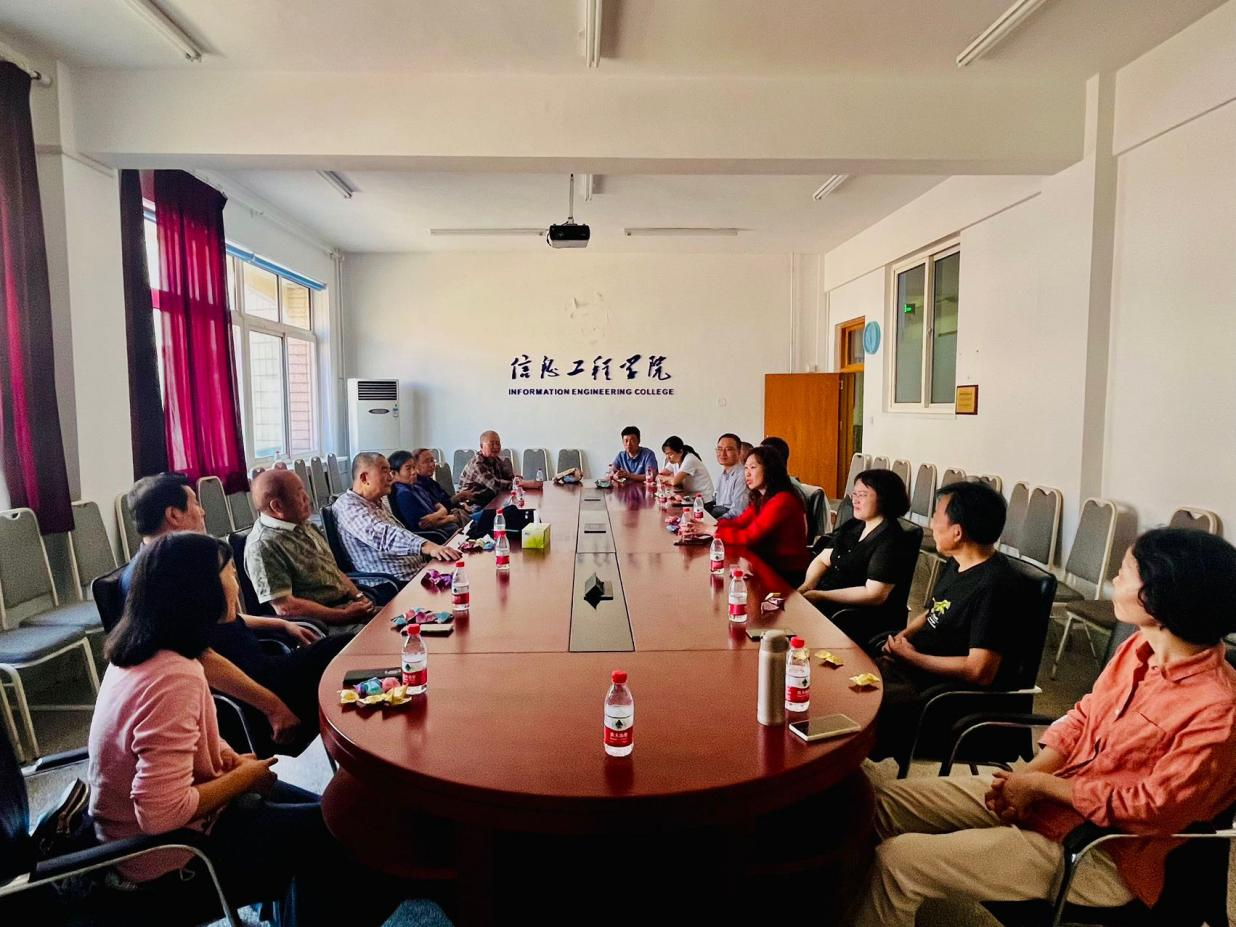 我校电子信息工程专业1996届校友2023年10月3日上午10时在北院综合行政楼s420组织“重温青葱岁月,感念母校培育恩情”返校聚会。曾担任该班级授课任务的蒋志凯、郭连喜、王丰才、吕显强、刘振才、刘春明、程绍洪等7位退休老教授以及时任辅导员的何杰副研究员应邀共同参与此次活动。