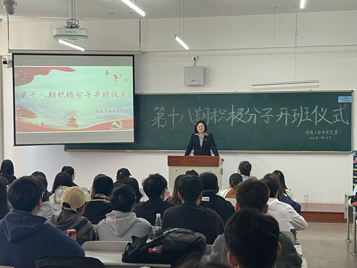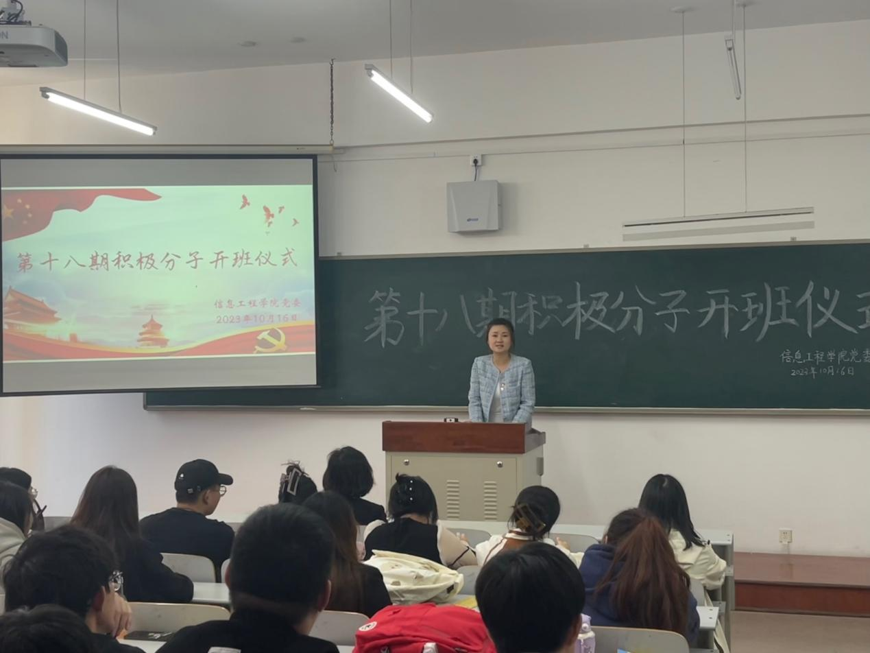 信息工程开元(中国)于2023年10月16日在獐教227教室召开了本科生第十八期积极分子开班仪式。信息工程开元(中国)党委副书记范庆华、组织员李瑾以及第十八期积极分子参加此次开班仪式。会议由王佳仪主持。