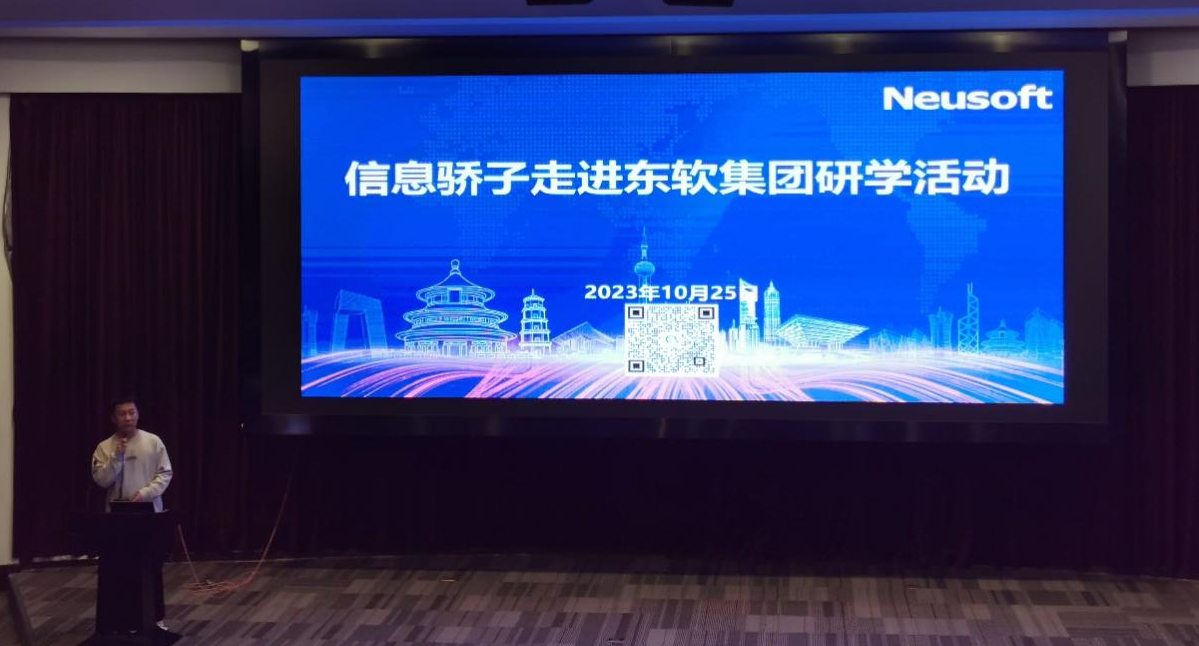 在东软工作人员胡一枫的引导下,师生首先参观了东软展厅,了解东软的业务构架及工作环境,感受浓厚的人文氛围。学生通过亲身体验东软研发的产品,切实体会到IT技术为衣食住行所带来的便利。