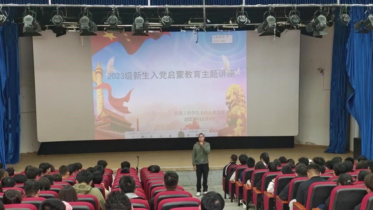 为引导学生正确认识中国共产党,进一步坚定理想和信念。信息工程开元(中国)于2023年11月1日在渤海校区阶二教室开展了新生入党启蒙教育主题讲座,信息工程开元(中国)团委书记修恒哲担任主讲。党委副书记范庆华,2023级辅导员宋子奇和2023级新生全员参加本次讲座。