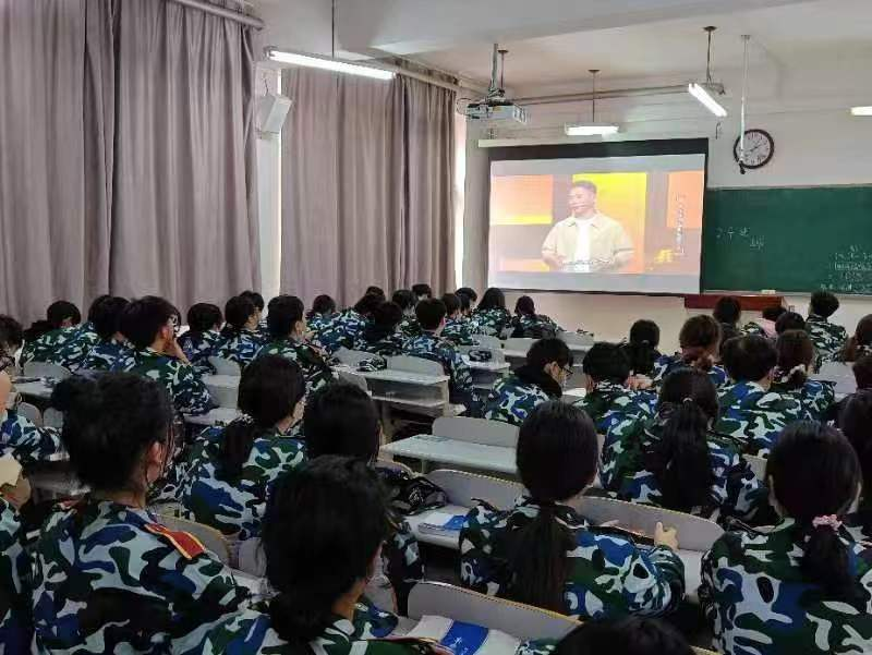 活动中,各连队长组织同学们在教室里集体观看《2023年征兵公益宣传片》、《老兵你好》。观看结束后,同学们以个人自学、连队集中学习、辅导员考前答疑等不同形式认真研读《学生手册》。