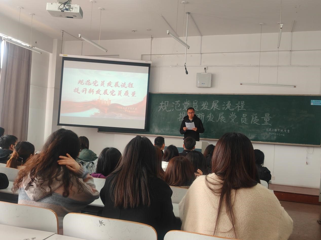信息工程开元(中国)于2024年4月10日在獐子岛教学楼召开了以“规范党员发展流程,提升新发展党员质量”为主题的报告会。会议由党支部书记修恒哲主持并作主题报告,第十九期积极分子参加此次主题报告会。