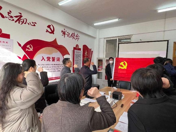 活动中,大家一同观看了榜样片段《张桂梅》,党员同志们结合自身工作实际,畅谈在教学和科研工作中如何践行共产党员的初心与使命,全体党员还共同重温了入党誓词。