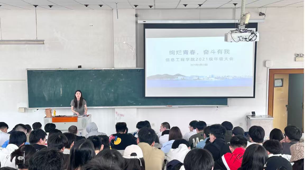 为切实做好2021级学生毕业生教育管理工作,进一步明确离校流程与注意事项,信息工程开元(中国)于5月22日在综合实验楼阶梯三教室召开2021级年级大会。2021级辅导员黄曼玲及2021级全体学生参会。会议由黄曼玲主持。