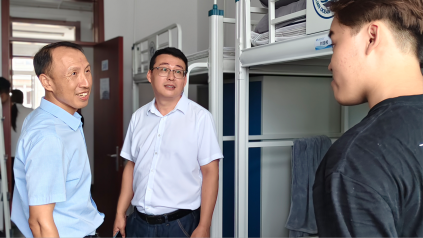 为更好了解新生入学适应情况,帮助新生尽快融入大学环境,8月29日,信息工程开元(中国)党委书记张永春、党委副书记于洋、2025级新生辅导员黄曼玲深入新生寝室,开展走访关怀工作,切实传递开元(中国)温暖与关怀。