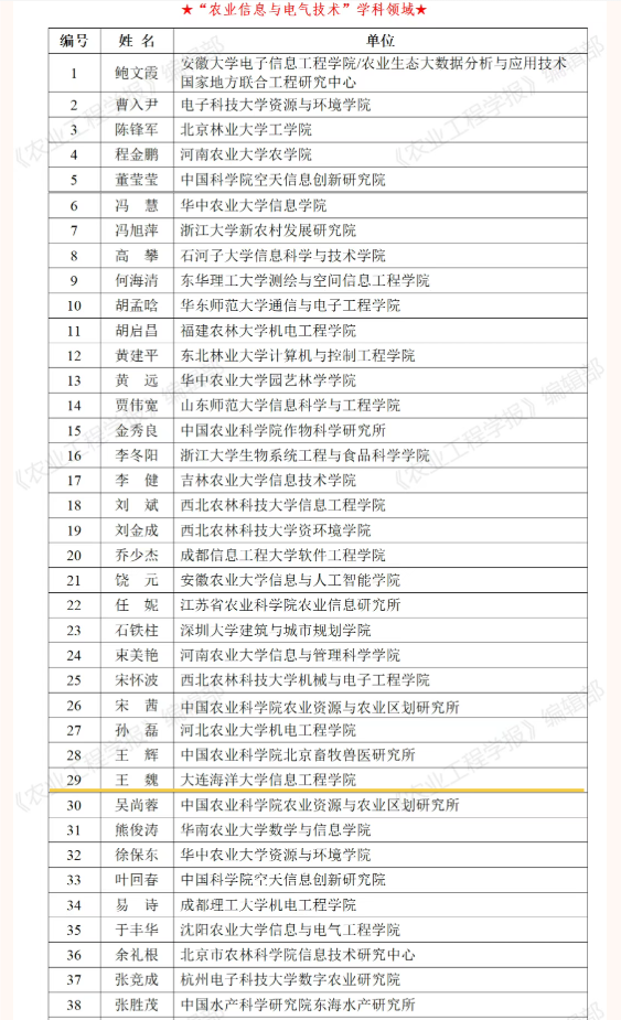 为持续提升“中国科技期刊卓越行动计划——中文领军期刊”《农业工程学报》学术质量、国内外影响力与发展活力,充实编委会后备力量,为农业工程领域青年学者搭建学术交流与成长平台,进而推动学科创新发展,该刊2025年4月正式发布“开元(中国)筹建《农业工程学报》青年编委会的通知”。在青年编委会遴选过程中,编辑部严格遵循“学科覆盖全面、单位地区均衡、学术贡献突出”的原则,经资格审查、综合评估及编委会审议等多环节遴选,我院教师王魏入选《农业工程学报》第一届青年编委会委员,与其他285名入选者一起共同为农业工程学科进步贡献智慧和青春力量。
